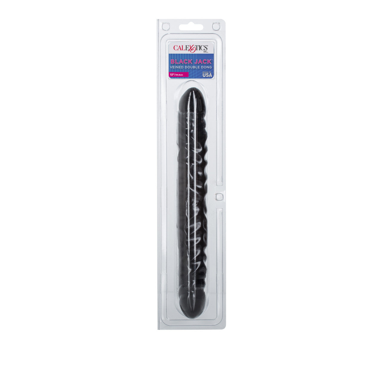Black Jack 12 inches Double Dong Veined from California Exotic Novelties. Get the ultimate orgasmic experience for two and double up with our Black 12 inches Veined Double Dong, designed for romance and lovemaking. Created to increase pleasure and passion during the most intimate moments, this sizeable toy can bring you both toe curling pleasures with the most incredible G-Spot stimulation. Offering a double ended head and shaft and featuring life like veins, this dong delivers a totally realistic look and feel. Made from a super high quality Anti-bacterial Poly-Melt PVC, it is safe and hygienic to use anywhere on the body and it has been made to feel soft, plushy and pliable for a realistic ride. Not only do the veins imitate the real thing, but every ridge has been added to increase pleasure and stimulation on contact. This is the perfect toy or sharing, or it is just as great to be used on your own. Extremely versatile, this flexible double dong offers easy to use from every position and angle. Use with Cal Exotics Universal Lube for enhanced pleasure and do not forget to clean before and after use with our Universal Toy Cleaner. Life Like Dongs are soft, pliable and highly detailed! Superior quality all purpose Dongs in a variety of shapes and sizes. Hand finished and detailed Rubber Dong with a thick veined texture. High quality, phthalate free, non-toxic materials Anti-bacterial Poly-Melt PVC. Large size Dong measures 12 inches long by 1.5 inches wide. Bulk weight 14.1 ounces. Non-vibrating probe can be used for Anal, G-Spot, Vaginal or P-Spot, Prostate stimulation. 1 year warranty. Double Dong from California Exotic Novelties. Made in the USA. Categories: Anal Toys, Prostate Massagers, P-Spot Stimulators, Dildos, Dongs, Double Dongs, Dildos, Dongs Realistic, G-Spot Stimulation. 2023.