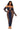 Seamless bodystocking gown with shaped opaque front and back panels, novelty design sides, and removable gold halter chain.