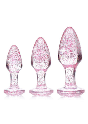 Expert anal players will appreciate the ease of which to warm up their ass for further fun with this Glittery set of plugs! Choose the size that matches your comfort level and surprise your lover when you pull your pants down with this dazzling anal gem!