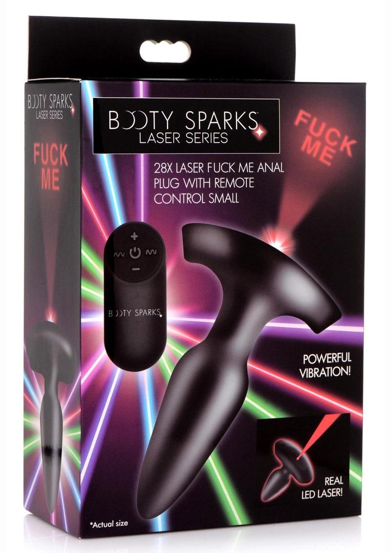 Booty Sparks Laser F... Me Rechargeable Silicone Anal Plug with Remote Control - Small - Black with Red Light
