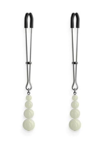 Bound Adjustable Nipple Clamps are for erotic and stimulating sensations. Made from nickel-free metal, Bound's clamps feature silicone tips for a better comfort and fit. Glows in the dark.