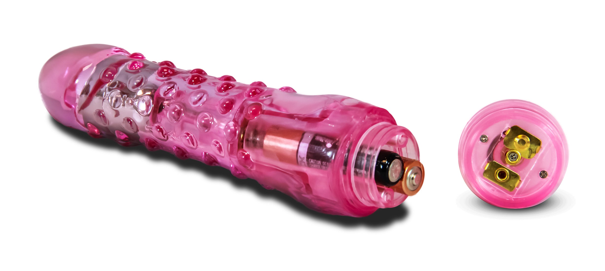 Bump N Grind is just what a girl needs for a special night. Sized perfectly for beginners and those who want something that fits just right. The bumps magnify the vibrations too stimulate you into orgasmic bliss. Twist the dial on the bottom to control the speed of the vibrations. Clean before and after each use with soap and warm water or toy cleaner. Remove batteries when not in use.