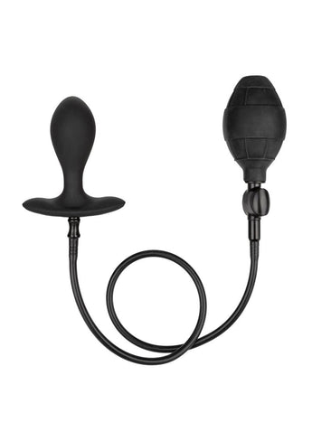 The CalExotics Weighted Silicone Inflatable Plug is a one-of-a-kind anal probe with inflatable weighted body, easy squeeze bulb and detachable hose. For increased pleasure, this probe is perfectly weighted with a 1.2 oz ball. To inflate your ecstasy, simply attach the hose and press the easy squeeze bulb. Once youb ve reached the desired size, the probe will hold its size even when the hose is removed. A quick air release button allows for gentle deflation and removal.To enjoy the exhilarating world of anal pleasure to the fullest, sensual stimulation is the key to success. The tapered silicone probe has the perfect amount of flex to bend and move naturally with your body. The durable flanged base is perfect for insertion, stimulation and removal. The flexible probe, hose and bulb are made from a seamless silicone with ABS plastic release valves. The silicone plug has an overall size of 3b x 1.25b (7.5 cm x 3.25 cm) b before inflation.