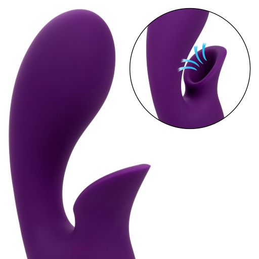 California Dreaming Huntington Beach Heartbreaker Vibrator from California Exotic Novelties. The playful California Dreaming Collection brings travel ready fantasies to life with the hot Huntington Beach Heartbreaker. The uniquely designed massager is ready to relive your favorite summer fling fantasies with 10 powerful functions of clitoral suction and 3 knee shaking vibration speeds. While the rumbling vibrations work their magic, the full coverage suction tip gives you knee shaking suction stimulation. The stimulating encaser has 10 functions of suction for wave after wave of orgasmic external stimulation. The shivering shaft of this ravishing rabbit uses an intense vibration motor for deeply satisfying internal stimulation. The flexible shaft vibrations can be used independently from the suction functions for truly customizable pleasure. The knee shaking gyrations packed into this playful vibe are not for the faint of heart! Dual power motors put out deep rumbling vibrations and powerful suction. Plug the provided USB cable into the self sealing charging port to recharge your passion in 2.5 hours. Thrill with up to 90 minutes of intense pleasure. To effortlessly control stimulation, the sleek 3 button control pad lets you independently operate the vibration and suction options. The high tech memory chip remembers just how you like it and resumes play on the last function used.