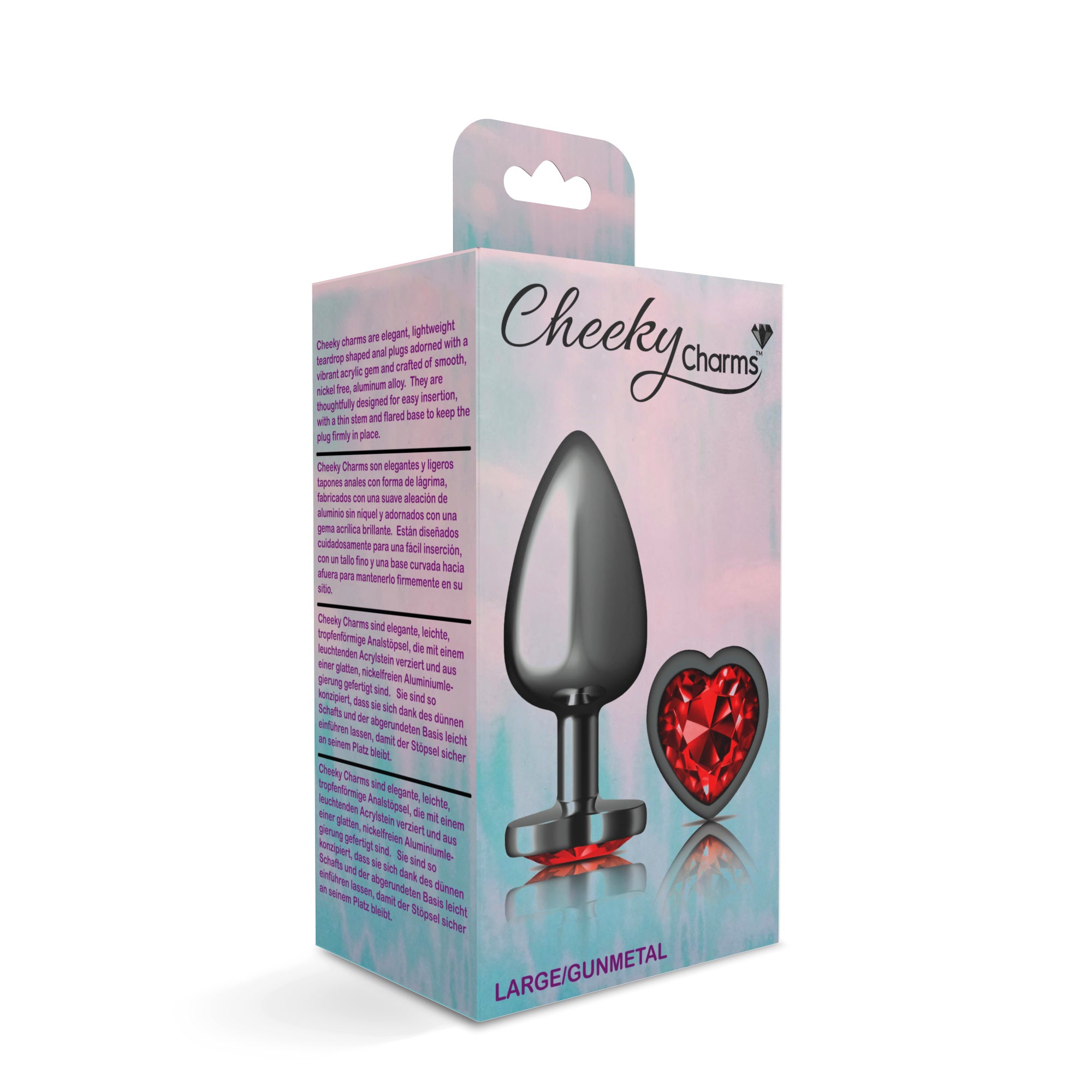 Cheeky Charms-Gunmetal Metal Butt Plug- Heart-Dark Red-Large