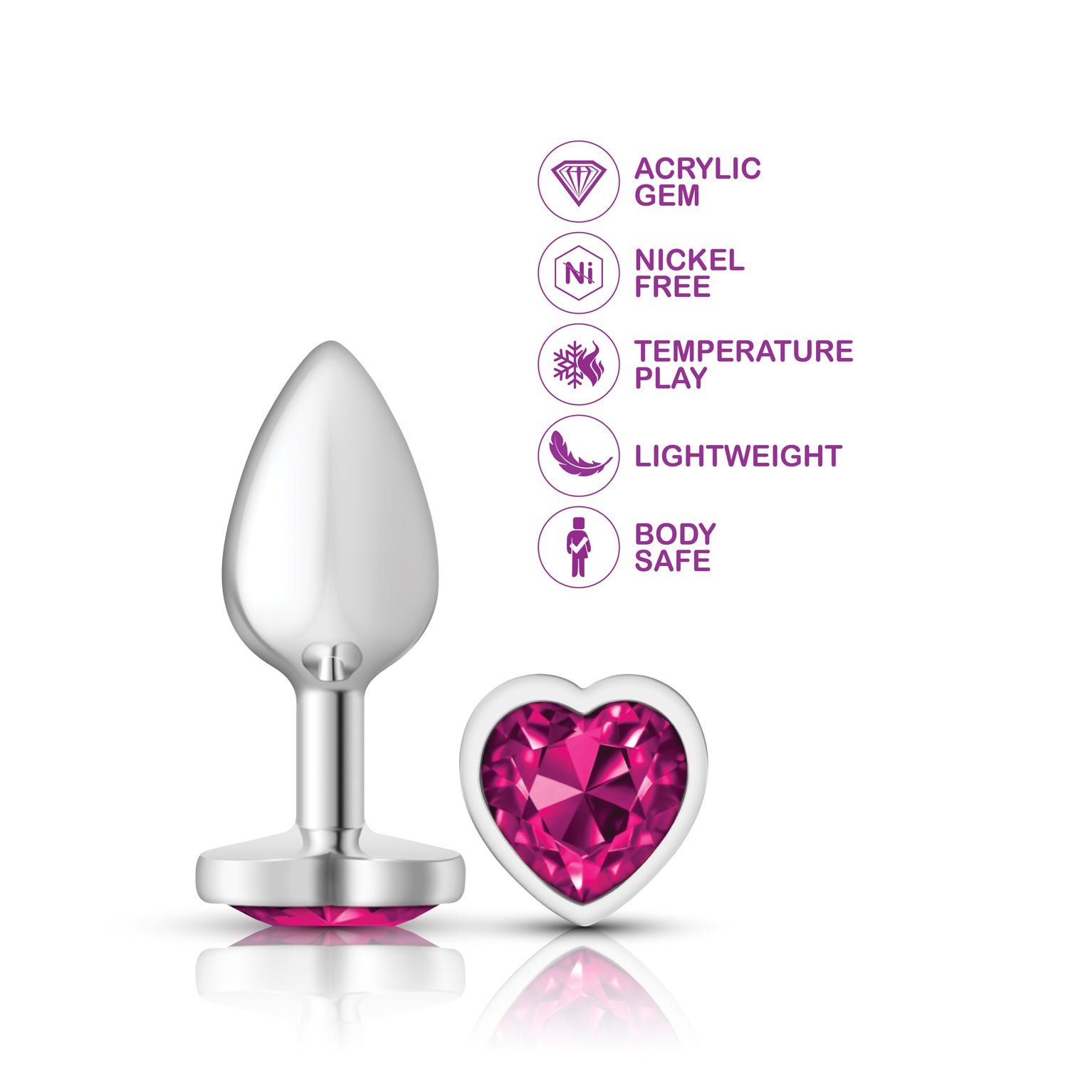 Cheeky Charms-Silver Metal Butt Plug- Heart-Bright Pink-Small