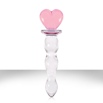 Crystal Heart of Glass Pink This beautiful piece comes in a decorative holder for those who like a bit of discretion in their play toys. A sensuously shaped wand with a heart top decoration intended for that special someone in your life. The entire Crystal collection is made of 100% hand-blown, premium Borosilicate glass. These items are of the highest quality, and represent the most vibrant and durable glass products available today. Crystal items can be heated/cooled to personal taste.