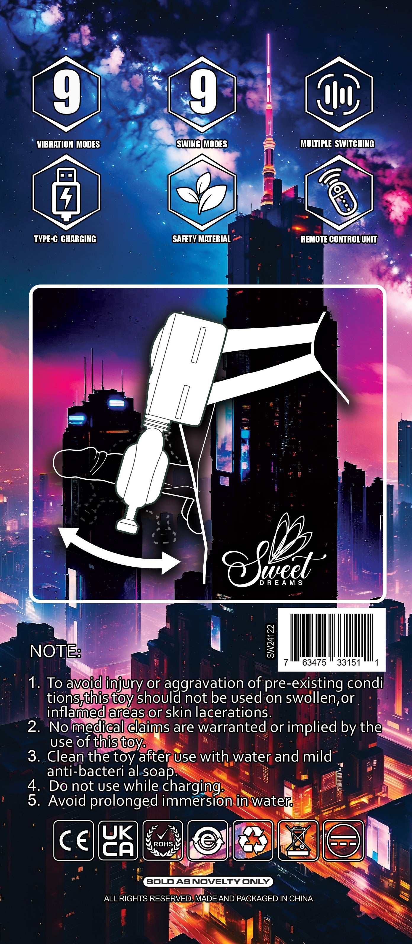 The Cyber Stroker has Velcro mounting straps that fit snugly around your body, for a self stroking experience line no other stroker can deliver. The cyber stroker comes with it's own remote control for hands free pleasure and featuring 9 vibration modes and 9 swing modes.