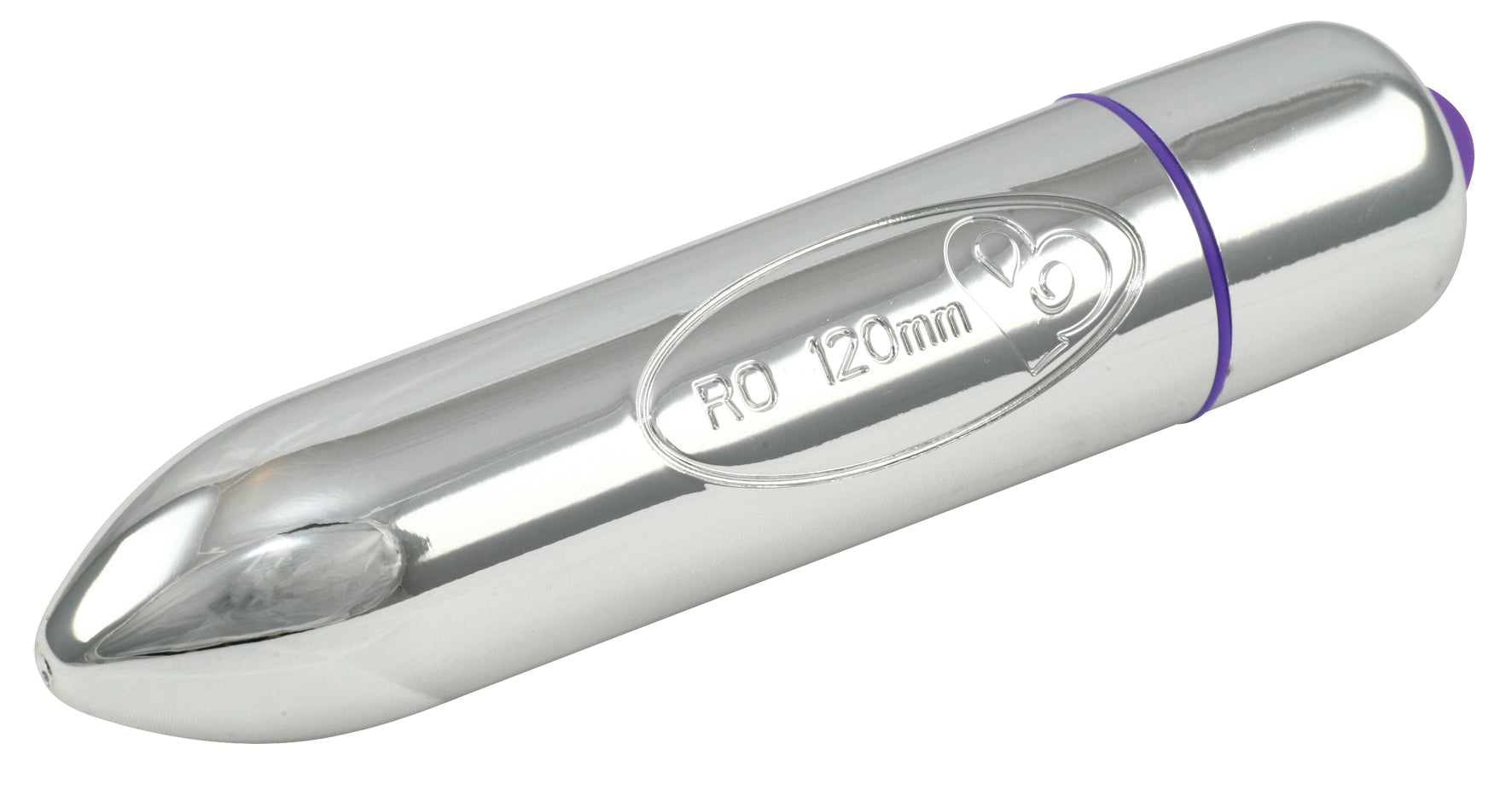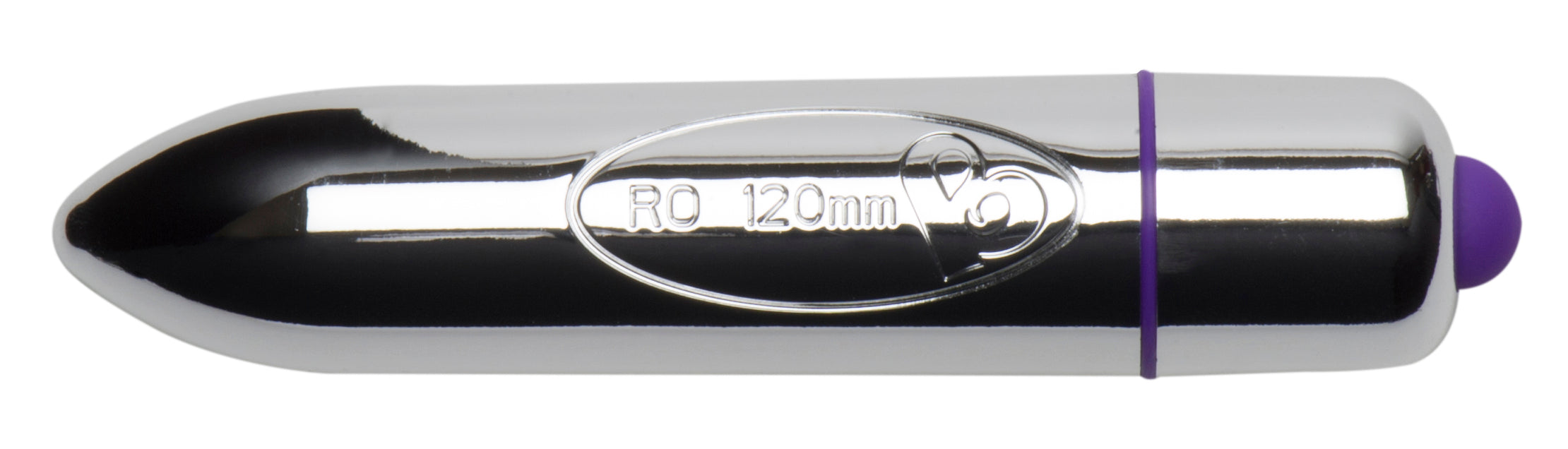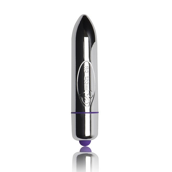 (D) Bullet Vibrator Chrome from Rocks Off Toys. Big beautiful and smooth a silk. A gorgeous pleasure bullet power house that will stroke and glide you into a frenzy of passion. A great bullet vibe for any occasion, so go treat yourself you know you want it. Ammo L'amour. This big bore vibrator will shake you to the core! The RO-120mm bullet has 5 explosive functions that are simple to activate with one touch of a button. A sleek chrome finish that creates a whole new feeling. With long lasting and easy to source AAA batteries that come included, the RO-120 is ready to go whenever you are. Its luxury hard box packaging makes it stand out and makes it the perfect gift for someone special in your life. Size: 125mm x 25mm e or approximately 4.92 inches by .98 inch. Battery Type: AAA batteries. Battery Quantity: 2. Diagram found on the back of product shows proper placement. How to use: instructions included in 12 languages. Remove the isolator disc before use. Press button on the end to turn on and change functions. Hold button for 3 seconds to turn off. Waterproof. Battery included. 7 Speed. Product validation and guaranteed booklet inside including translations for CN, CZ, CR, DE, FR, IT, NL, PL, RU, ES. Please keep packaging for further reference. Bullet Vibrator 120mm Chrome from Rocks-Off Limited Sex Toys. Categories: Vibrators, Bullets, Eggs, Sex Toys for Women, Vibrating Bullets and Eggs. No longer available. 2024.