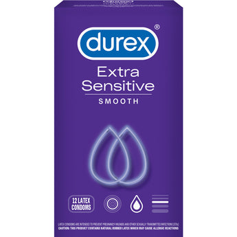 Durex Extra Sensitive Smooth Latex Condoms 12 Count from Paradise Marketing. Durex Extra Sensitive is one of our finest condoms created to enhance feeling between you and your partner, bringing you closer through sex. Extra Sensitive condom have extra lubrication, that helps heighten sensitivity and increase your pleasure. Durex Extra Sensitive condoms give you the intimate feeling of skin on skin contact. These male condoms are ultra fine lubricated latex condoms to help heighten the excitement and pleasure. Designed to be easy to put on and comfortable to wear and features a reservoir tip. Caution: this product contains natural rubber latex which may cause allergic reactions. This package is tamper evident. Do not use if carton or condom foils are damaged. When used correctly every time you have sex, latex condoms help prevent pregnancy and reduce the risk of transmitting HIV/AIDS and other sexually transmitted infections. Latex condoms do not completely eliminate the risks of pregnancy and sexually transmitted infections STIs. To get the most protection from a latex condom, use one correctly every time you have sex. Please see directions for use inside the package. There are many STIs. A latex condom can reduce the risk of STI transmission to or from the head of the penis. However, some STIs can also be spread by other sexual contact. For additional information on STI protection, please read the information inside the package; if you believe you have an STI, contact a health care provider. For more information on condoms or STIs, contact a health care provider or public health agency. Use each condom only once. Store in a cool, dry place below 100 degrees F and avoid exposure to direct sunlight. Avoid excess heat. Barcode 067981160482. Categories: Condoms, Sex Toys for Couples, Durex Latex Condoms. 2024.