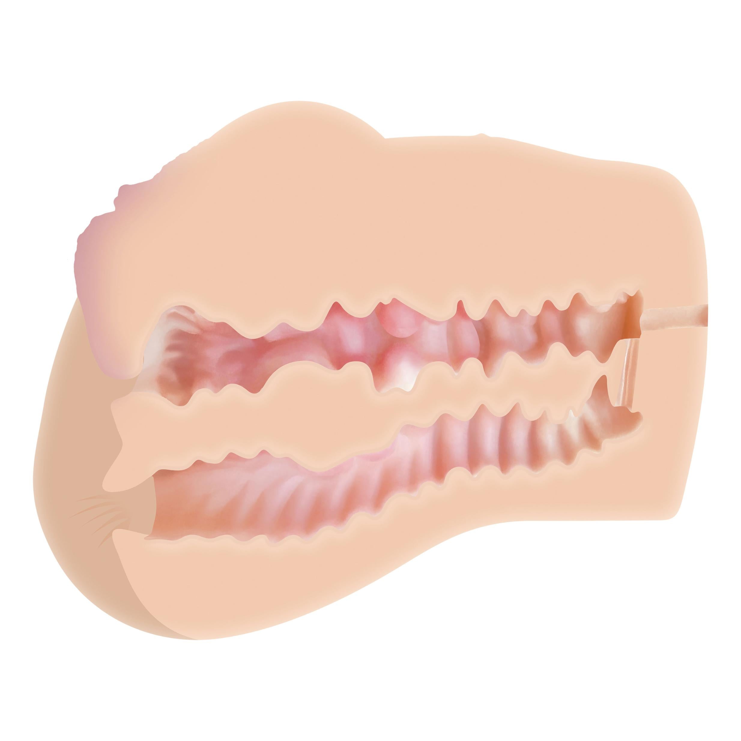Fulfill your double fantasy with this two-channel stroker that lets you slip through the front door and bang the back door as hard as you want! Crafted with super-stretchy and pliable TPE rubber that moves with your body as you thrust, use the hips to hold on, and dive into that pink sweet spot primed with complimentary Zero Tolerance lube. Feel the life-like tight fits of vaginal and booty canals all around you as you watch the notorious Dani Daniels for some superhot hardcore inspiration!