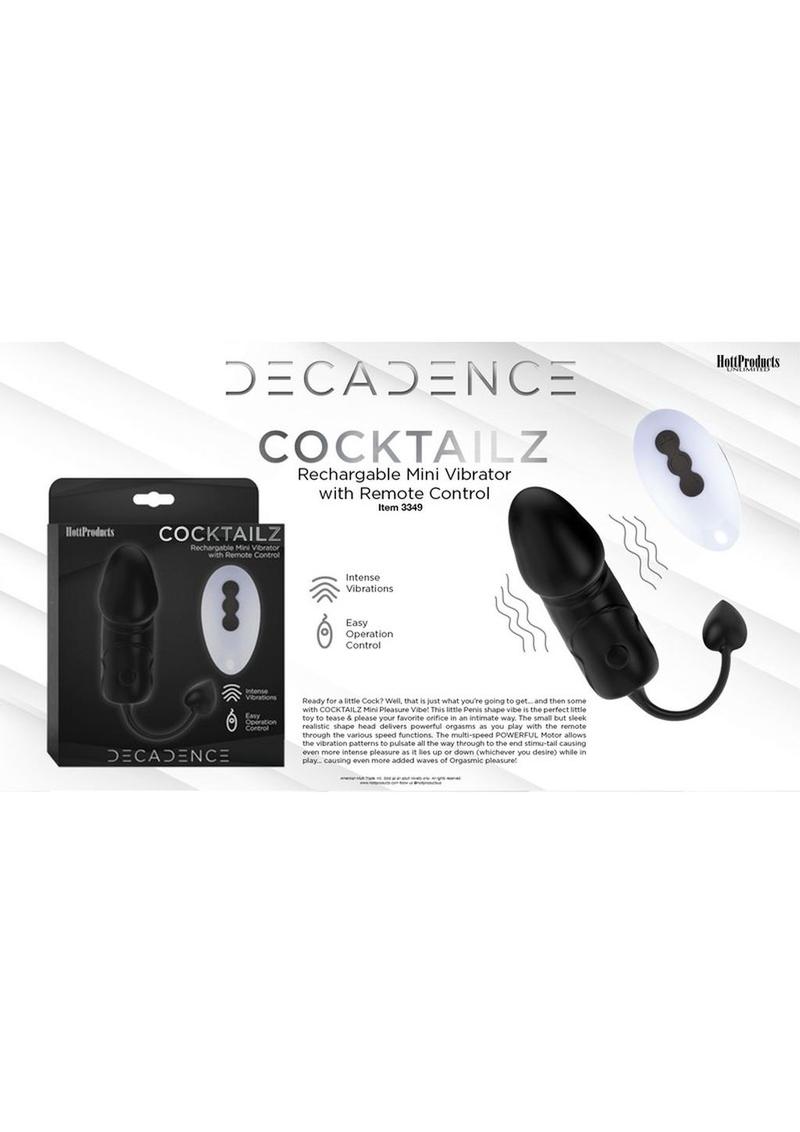 Ready for a little Cock? Well, that is just what youb re going to get... and then some with COCKTAILZ Mini Pleasure Vibe! This little Penis shape vibe is the perfect little toy to tease & please your favorite orifice in an intimate way. The small but sleek realistic shape head delivers powerful orgasms as you play with the remote through the various speed functions. The multi-speed POWERFUL Motor allows the vibration patterns to pulsate all the way through to the end stimu-tail causing even more intense pleasure as it lies up or down (whichever you desire) while in playb & causing even more added waves of Orgasmic pleasure!