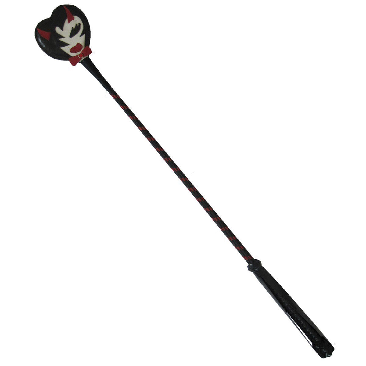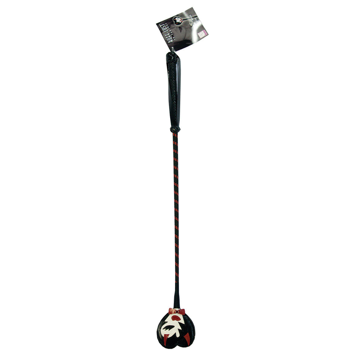 This 25" temptress crop seduces with her full sultry red leather lips. She beckons you to indulge in your secret femme fatale to become a wicked siren. Handcrafted with a supple leather tip, nylon covered length of the crop, and leather braided handle for a firm grip. Only available at Entrenue.