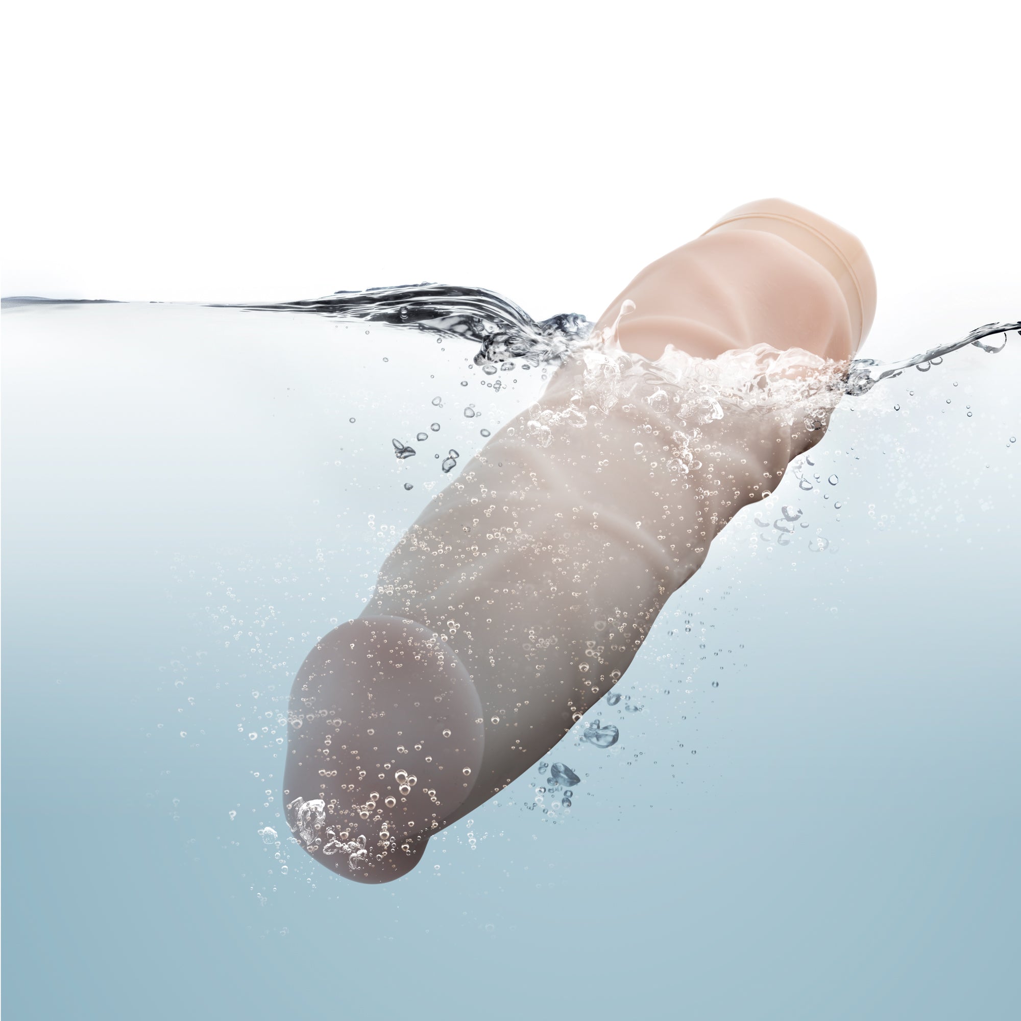 Dr. Skin Vibe #1 is a 9-inch vibrator with veins and a twist dial base for multi-speed vibration. It's tapered head and thin shaft can be comfortably and easily inserted. Created for the beginner and for the cost conscious, Vibe #1 is made of phthalate free PVC, which is comfortably soft yet rigid for vigorous play. Wash before and after each use with soap and warm water. Remove batteries when not in use.