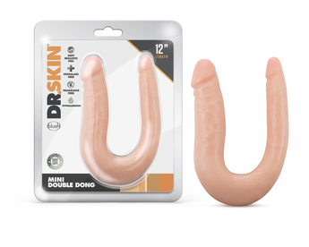 The doctor will see you now! The Dr. Skin Mini Double Dong is open for practice, ready to aid you in exploring creative possibilities. This soft, U-shaped toy flexes and curves, making it ideal for double penetration or for comfortable use between partners. Grip its U-shape curve and move both heads for blended pleasure! Featuring 2 different-sized ends for comfort: slim on one side, and average girth on the other. Made of lab-tested non-porous PVC, Dr. Skin toys are body safe, phthalate-free, and easy to clean.