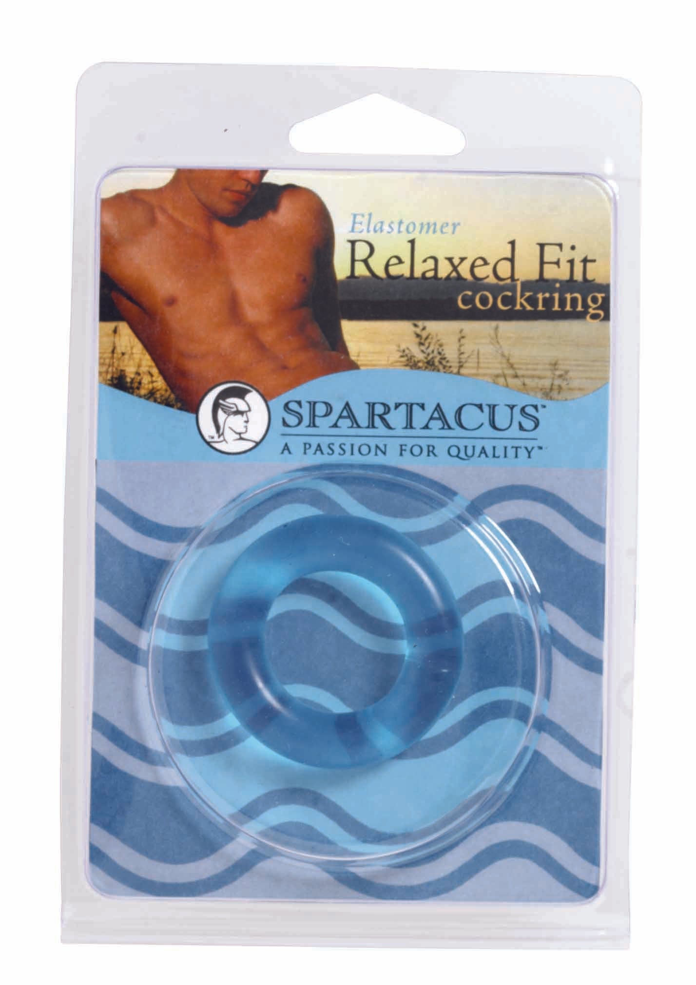 Elastomer Cock Ring Relaxed Fit is available in three colors: Purple, Blue and Black. Each sold separately. Relaxed Fit Elastomer Cock Ring features a simple, donut-shaped design. Elastomer is a stretchy, highly flexible material. Elastomer's durability and longevity make it a smart choice for long-lasting, high-quality toys like Spartacus Cock Rings. Free of latex and phthalates, elastomer can be used with any lubricant, oil, or cream. The Relaxed Fit Elastomer Cock Ring features a simple, donut shaped design. Cock rings when worn around the base of the penis and testicles, many users find that cock rings increase sexual pleasure. Spartacus cock rings are made with stretchy elastomers. Phthalate free, Thermoplastic Elastomers TPE. Color: blue. Spartacus Leathers A Passion for Quality Catalog. Milwaukie, Oregon. Made in the USA.
