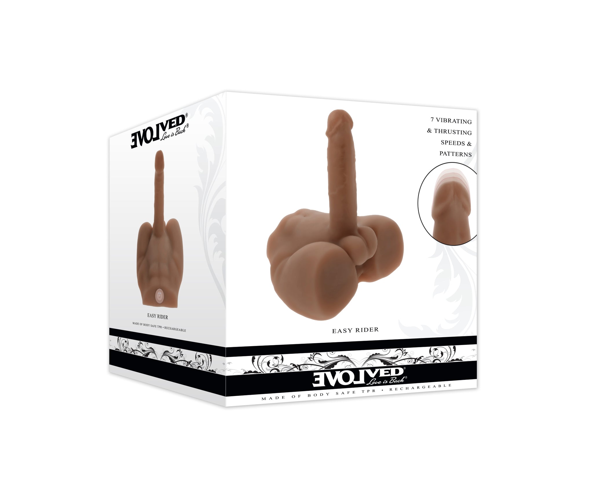 Evolved Easy Rider Dark, Get ready for an authentic experience with this thrusting , vibrating torso -shaped toy you can hold and squeeze while you play. Supple and stretchy, the realistic shaft flexes with your body, allowing you to build to a life -like, deeply satisfying climax