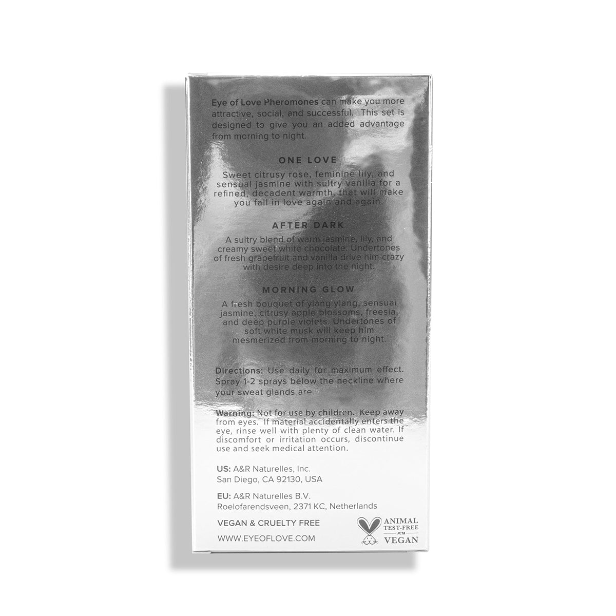 Pairing powerful pheromones with captivating fragrances, Eye of Love's mission is to give you a unique edge in all of your encounters. Whether you're working, playing, or being intimate we can all use an added advantage. Eye of Love pheromones are high potency with pheromone and fragrance to last you all day long.