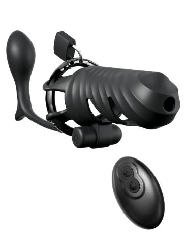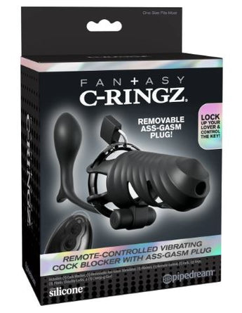 This is no ordinary cock blocker... It also features the best-selling Ass-Gasm plug attachment, which serves as a removable option. It also sports a powerful remote controlled 10-function vibrator that can be used as the ultimate tease for your partner!