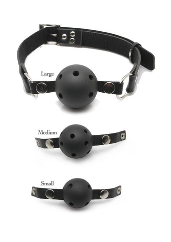 Don't say a word! The Ball Gag Training System is perfect for beginners who are new to being gagged, yet versatile enough to satisfy a pro. The 3-gag training system allows you to start with a small gag and gradually work your way up to the larger one - and go from mild to wild as you progress! Each gag is interchangeable using the snaps, made from non-toxic plastic and fitted with holes to make breathing easy. The sturdy black leather strap easily adjusts to fit most sizes, giving you instant control over when, and how often, your lover speaks. You'll teach your partner the meaning of submission in no time at all - remember practice makes perfect!