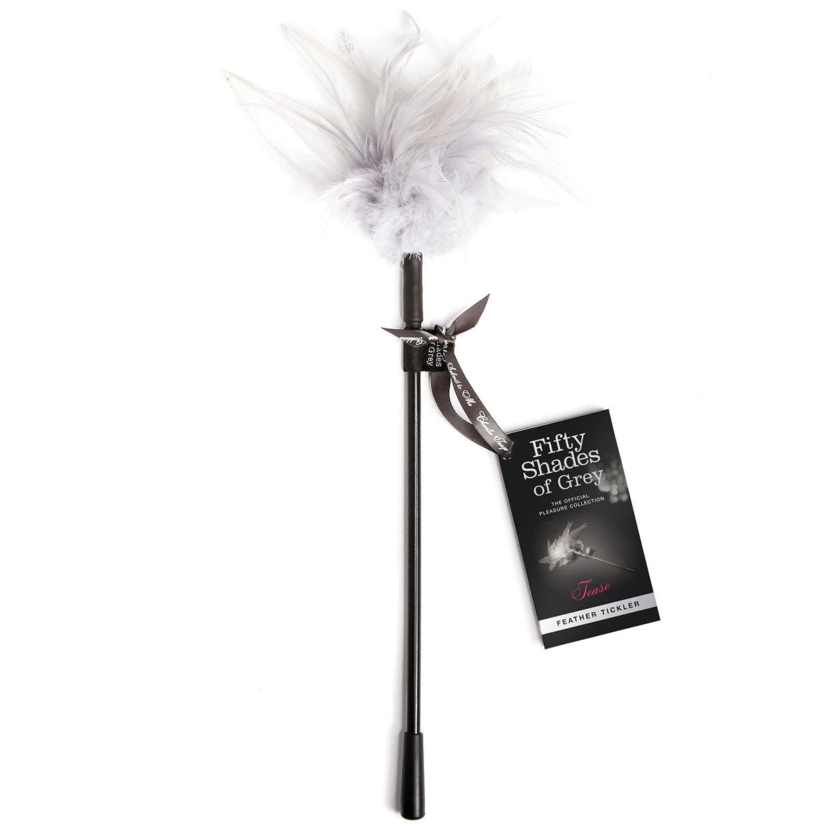 Allow arousal to mount slowly under the expert touch of this soft feather tickler. The plume of feathers leaves a trail of goosebumps in its wake to increase sensitivity and excitement. Prolong lust and let pleasure build at an achingly slow pace while enjoying the sensual touch of soft feathers teasing and tickling your skin. Full body titillation comes easily thanks to the long and slender handle which adds additional reach for the feathers. Stroke from the cheeks to the toes in a single motion without having to unlock lips -- making sensory play feel more intimate and exciting. Best enjoyed with a blindfold as a prelude to more intense stimulation, a feather tickler can be enjoyed as part of bedroom bondage or to simply excite your lover before play. Part of the Fifty Shades of Grey The Official Pleasure Collection approved by author E L James, this seductive feather tickler is the ideal erotic gift for fans of the trilogy.