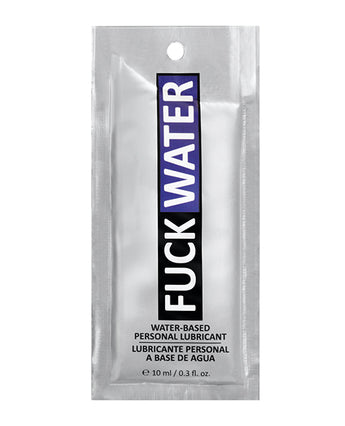 Fuck Water .3 ounce Water Based Lubricant Pillow Packs. Made of only premium ingredients, Fuck Water is the perfect wingman. Whether you are going out on the town or staying in alone, you are never flying solo with Fuck Water at your side. Because its glycerin free it never dries sticky. It is long lasting, cleans up easily with water and delivers the perfect amount of lubrication every time. It is also paraben free and made with the safest preservatives, so you're always clear for take off. Like a friend on the inside or someone to lend you a hand, Fuck Water is the only wingman you need.