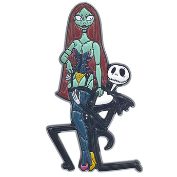 You favorite kinky couple from Halloween Town! This pin is 2" of pure soft enamel with two backing pins and black rubber clutchs.