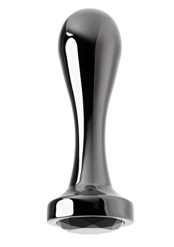 This classic large plug shape is rendered in a sleek gunmetal finish to deliver a smooth experience no matter how you want to slip, slide or ride it! Made from body-safe aluminum, it can be heated or cooled with water for erotic sensation play as you enjoy the swelling bulbous shaft – all the way from its rounded tip to its tapered tail! The robust safety base is punctuated with a sparkling black gem that you can show off while you play! Black velvet carry bag included for convenience and discretion.