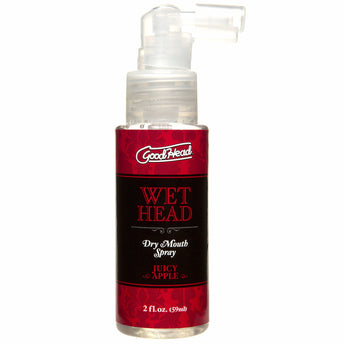 Goodhead Wet Head Dry Mouth Spray Juicy Apple. Banish dry mouth during oral sex with Goodhead Wet Head Dry Mouth Spray. Available in two mouthwatering flavors of Juicy Apple and Sweet Strawberry, this dry mouth spray comes in a handy 2 fluid ounces bottle, and provides instant moisture and fresh breath. A couple spritzes is all you need for a night of sensual fun! Sugar-free, vegan friendly, paraben free and body safe. Made in the USA.