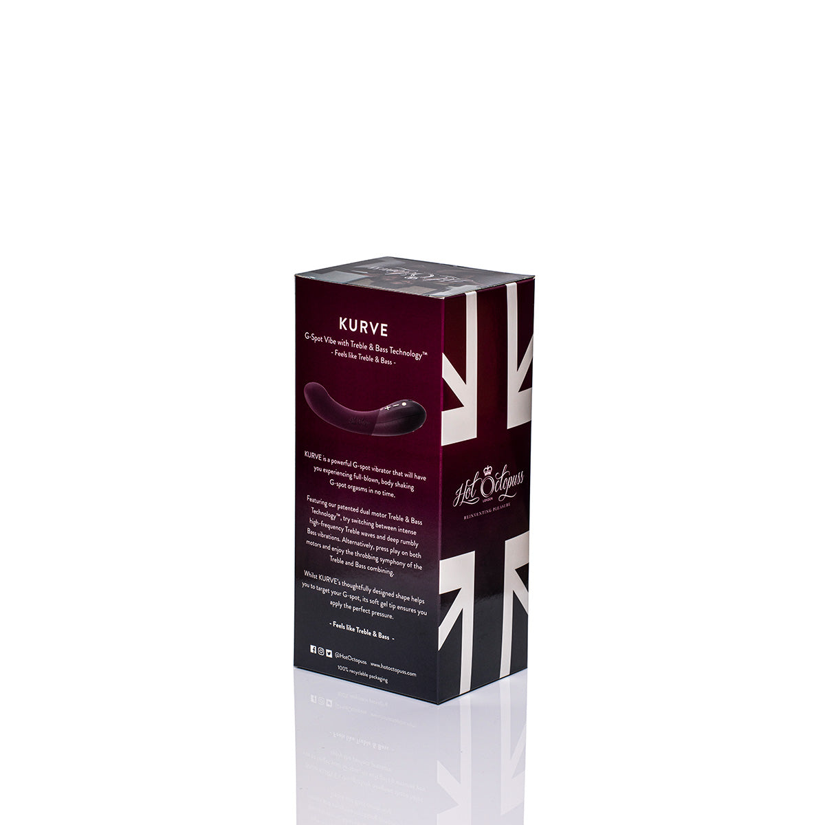 KURVE features Hot Octopuss patented dual-motor Treble and Bass technology, offering the ultimate in user customization. Boasting a soft gel tip that provides a broad surface area and ergonomic contours that ensure the right kind of pressure just where its wanted. KURVE is a sex toy superhero on a mission to seek out the G-spot.