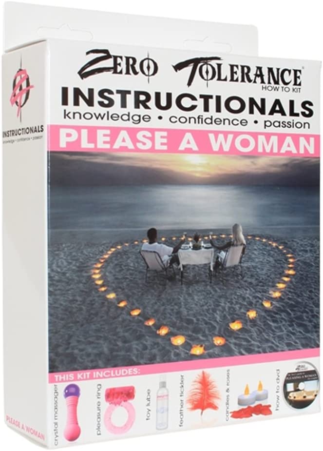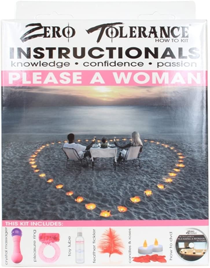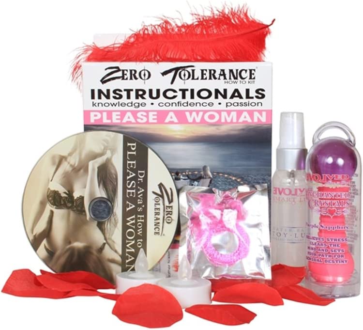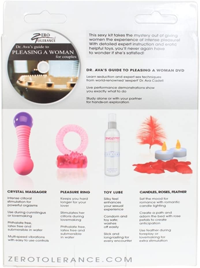 Zero Tolerance Instructional Kit How To Please A Woman. Instructional knowledge, confidence and passion. Includes: Crystal massager, pleasure ring, smart toy lube, feather tickler, candles, rose petals, and a how to DVD: Dr Ava's Guide for Pleasing A Woman for couples. World renowned sex therapist Dr. Ava guides you through live demonstrations of the four essential phases of pleasing a woman. You will learn how to satisfy her emotionally, physically, sexually, and even after lovemaking. Brush up on how to create a romantic atmosphere and get her in the mood for sex. Discover sensual foreplay techniques, oral sex tips and many orgasmic sexual positions. Explore and stimulate her G-Spot, A-Spot and U-Spot, and learn the ancient tantric Venus Butterfly orgasm technique as well as the body melting Tri-gasm. Whether you are single or in a long term relationship, this DVD will improve your sex life with these must have techniques that are guaranteed to make you a hero in the bedroom. Categories: Vibrators, Sensual Kits, Massage Kits, Vibrator Kits. 2024.