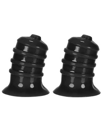 Elong Nipples suckers work...and look so cool. They will suck any size nip and are deep enough and big enough to fit small to medium piercings. These stay on - the base flares out for more contact with skin. What gives them powerful suction are the four springy rings that make the nipple-tube pull open without collapsing like other suckers.