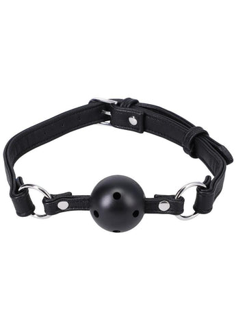 Silence is golden. This vegan leather Ball Gag is designed to gain you the respect you deserve. Bands of black vegan leather caress yours or your submissiveb s face at either side of a ball sized to fit most mouths. The ball has holes in it to allow breathing, and a locking buckle ensures that it canb t be removed until release is granted. Suitable for long-term practitioners and new initiates alike.
