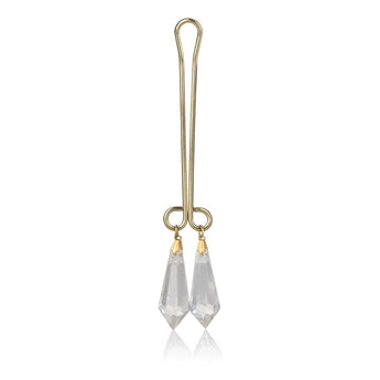 Non-piercing Clitoral jewelry is designed to remain in place without inflicting pain. This item is a type of jewelry used to add to a woman's sex appeal. This is not a torture device. Non-tarnishing, Nickel free body jewelry for women. Safe and pure for body and pleasure. Made using phthalate free, non-toxic materials ABS Plastic Crystal, Steel clip. Clitoral clip measures 4.25 inches long. Bulk weight 1.2 ounces. 1 year warranty. Intimate Play Collection Clitoral Jewelry Crystal Clear is a registered trademark for California Exotic Novelties. Sex toys and sexual wellness. Categories: Bondage, Fetish, Kink, Whips, Paddles, Ticklers, Sex Toys for Women. 2023.