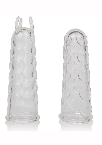 Enjoy new feelings of self-gratification with the versatile Finger Teasers. The easy to use finger stimulation sleeves are supplied in a pair for tantalizing erotic exploration that is limited only by your imagination. The contoured, stretch to fit teasers are textured and sensually swirled for maximized stroking, rubbing and stimulation ecstasy. The Finger Teasers are made from soft and supple, unscented phthalate free TPE. The exotic fingertip arousers are sensually swirled and textured with love heart shaped pleasure nubs, for intensely satisfying sensuous tingles and sensations. Use with a water-based lube for maximum enjoyment. Use with a water-based lube for maximum enjoyment.Before and after every use, clean the finger arouser sleeves with mild soapy water or a toy cleaner spray.