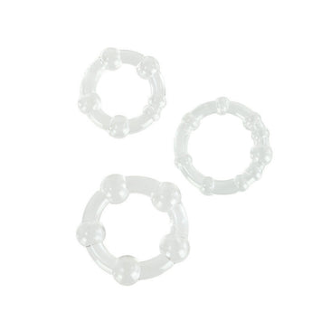 Island Rings Clear Set from California Exotic Novelties. Ring the changes with the exotic Island Rings. The trio of stretchy erection enhancers put you in full control of your stamina maintenance and stimulation pleasure. The small, medium and large size all purpose Cock Rings are designed for extended intimate play and spontaneous satisfaction. Select your preferred enhancer, and enjoy tantalizing tingles of ecstasy and non-stop action. The rings are made from soft, smooth and flexible, transparent Thermoplastic Rubber TPR and are adorned with sensuous pleasure Beads and stimulation nodules, for enhanced orgasmic sensitivity. The exotic erection Enhancers are designed to support stamina for prolonged performance. To use, choose your ring and slide it on to the erect Penis so that it provides a secure fit at the base. Use a quality water based personal lubricant for increased sensations and unlimited enjoyment. Perfect for first time and experienced users, the Island Rings are easy to use and reusable so that you can enjoy endless encounters of the erotic kind. Use the Enhancer Rings for self gratification exploration and during extended couple’s play. The Rings can also be used alongside your favorite vibrating stimulation toys for a mind blowing climax experience every time. Remember to clean the stretchy support Rings before and after every use. Wash in warm, soapy water or clean with a toy cleaner spray. 3 sizes of soft and stretchy all purpose Rings. Cock Rings are made using phthalate free, non-toxic materials Thermoplastic Rubber TPR. Diameters of each Ring small 0.75 inch, medium 0.85 inch and large 0.9 inch. Each Ring contains pleasure beads all around. Bulk weight 0.1 ounce. Use together or individually prolong Rings prevent premature ejaculation and act as Climax Control for men and Clitoral stimulation for women. Safe and pure for body and pleasures. Island Rings is a registered trademark for California Exotic Novelties. Sex toys and sexual wellness. Wash before and after each use. Always use a water based personal lubricant with this product for maximum pleasure. Important warning: this novelty product is intended as a sexual enhancing aid. Not intended for contraception/birth control or treatment of erection conditions. Use no more than 30 minutes at a time. Allow 60 minutes between additional uses. Do not fall asleep or be under the influence of alcohol or drugs while using this product. Prolonged use without removal may result in bruising to the base or permanent injury to the penis. Consult you physician should any complications should occur and discontinue use immediately. Categories: Love Rings, Cock Rings, Classic Cock Rings, Cock Ring Trios. 2023.