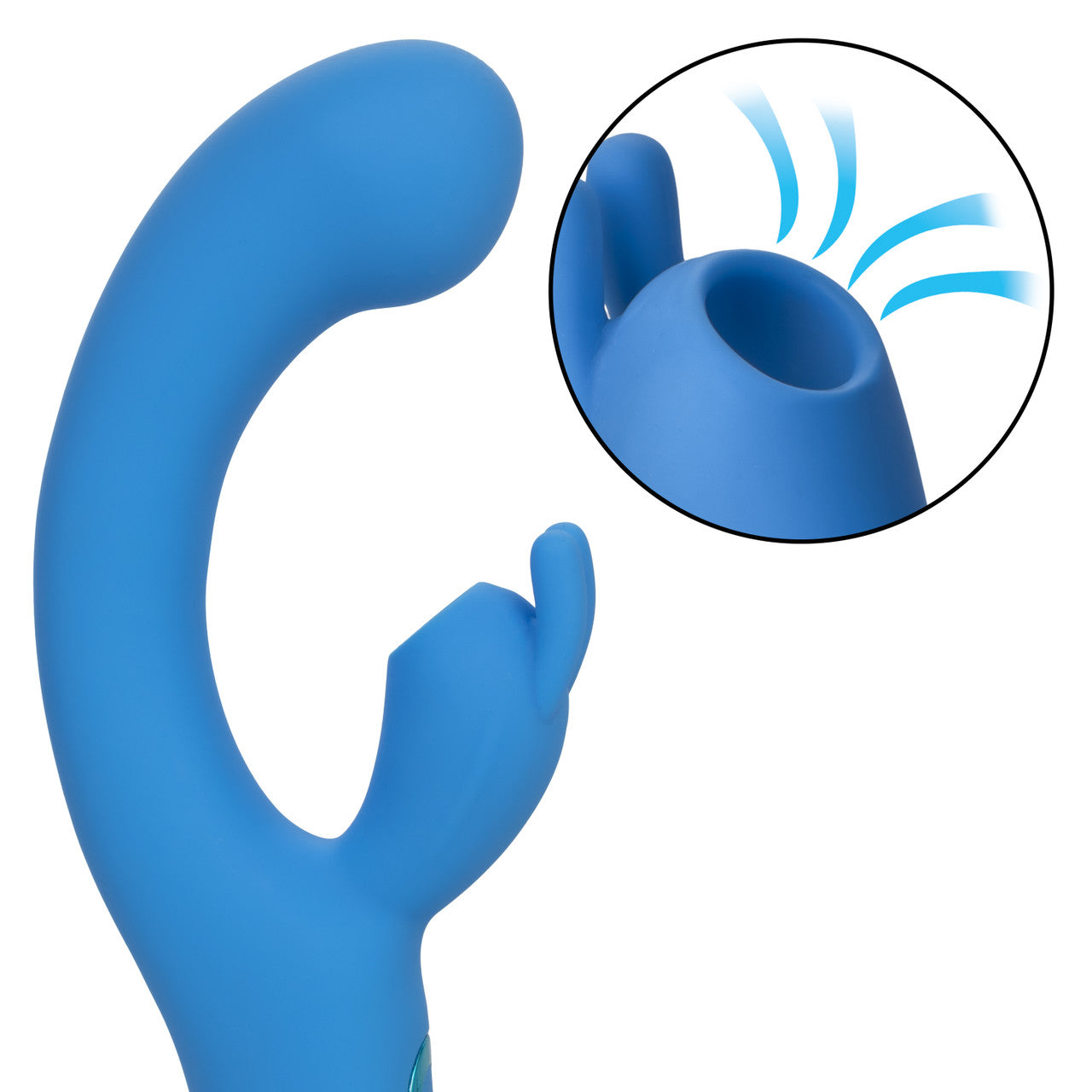 Jack Rabbit Elite Suction Rabbit Vibrator from California Exotic Novelties. Experience the ultimate pleasure with the Jack Rabbit Elite Suction Rabbit. This luxurious sex toy combines powerful vibrations, flickering rabbit ears, and intense suction for an extraordinary sensation. The contoured vibrating shaft, with 10 intense functions of vibration, pulsation, and escalation, provides deep and satisfying internal stimulation. Indulge in the dual flickering Rabbit ears that deliver precise and tantalizing sensations. But that is not all - the stimulator features 10 functions of intimate suction, creating an incredibly pleasurable suction effect for added excitement. With dual motors, this Rabbit is designed to deliver maximum pleasure. The premium Silicone construction ensures a velvety smooth feel, while the waterproof and IPX7 submersible rating allows for adventures in the shower or bath. Thanks to the state of the art memory chip, it remembers your last function used, so you can easily pick up where you left off. The security travel lock feature ensures worry free transportation, while the USB rechargeable design with the included charging cord provides convenience and sustainability. A complete charge in just 2 hours gives you up to 60 minutes of intense pleasure on high speed and 100 minutes on low speed. Get ready to be blown away by the Jack Rabbit Elite Suction Rabbit and discover a whole new level of satisfaction.