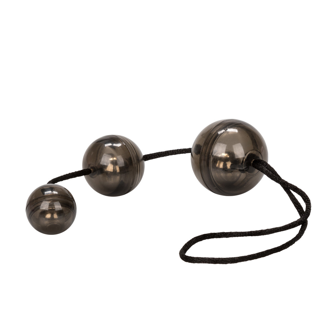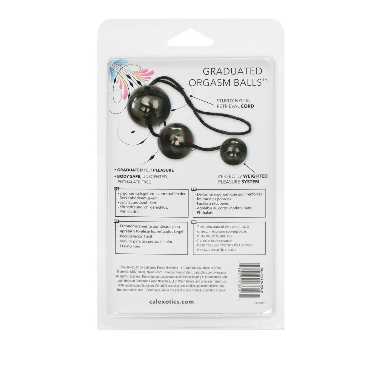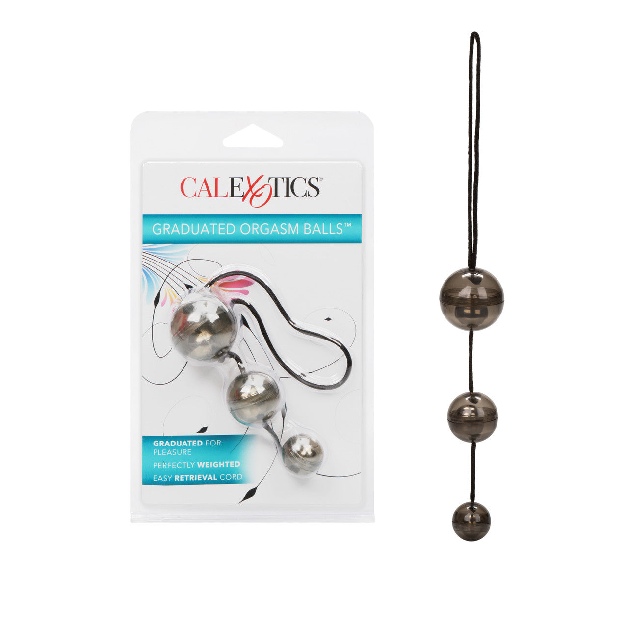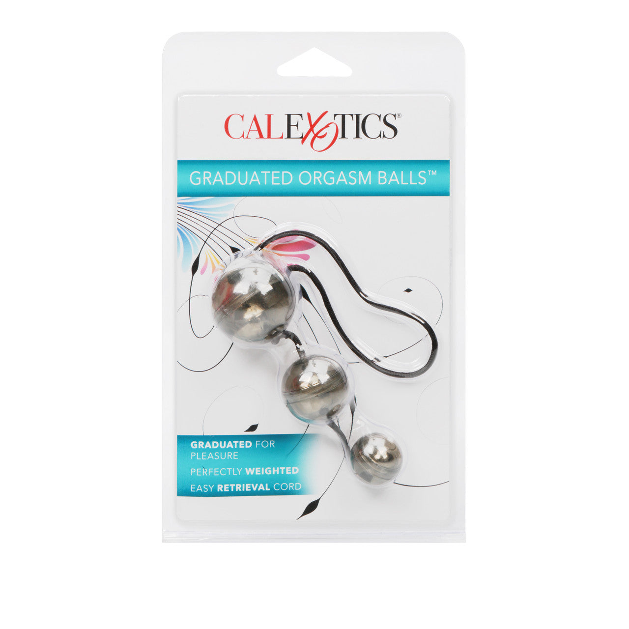 (D) Graduated Orgasm Balls formerly Lacey's Graduated Orgasm Balls from California Exotic Novelties. Elevate your orgasmic pleasure and satisfaction with Lacey's Graduated Orgasm Balls. The easy to use, smooth, contoured pleasure Balls are graduated for arousal and stimulation that suits your sensitivity and ecstasy pace. Insert one ball at a time, and enjoy exquisite erotic sensations that blow your mind. These pleasure Balls comprise of a trio of smooth, contoured Love Balls that are weighted for maximum internal stimulation. The Orgasm Balls measure 0.75 inch small orgasm ball, 1 inch medium orgasm ball, 1.25 inches large orgasm balls and are made from durable materials. The translucent Balls are attached to a strong Nylon Cord for easy and safe Vaginal insertion and retrieval. Designed for discreet internal use, the weighted Balls deliver intense erotic tingling sensations with every jiggle. Insert the Balls and tone up your Love Muscles, while enjoying spontaneous seductive Orgasms. Perfect for first time and experienced users, the pleasure Balls can be comfortably worn throughout the day. For instant arousal, slip the pleasure Balls inside the Vagina for fun during intimate solo play or couple’s foreplay exploration. To maximize sensitivity, always use a quality lube with this toy. After Kegel Muscle Training and ecstasy, remove the Balls by gently pulling on the Nylon Retrieval Cord. Before and after every use, clean the Orgasm Balls with a toy cleaner spray, or wash them in warm soapy water. Rinse with warm water. Pat dry before storing. Translucent Bronze Weighted Orgasm Balls with sturdy Nylon Retrieval Cord. 3 different weights Ben Wa Style Balls help with Vaginal/Pelvic Exercise. Also good for Bladder Control strengthening. Sturdy Nylon Retrieval Cord for safety. ABS Plastic Balls. String attachment for retrieval. Multiple use scientifically weighted Balls can be used in conjunction with Kegel Exercises. Balls do not vibrate with batteries but rather with kinetic energy. Use for Pelvic Exercise by holding them in to strengthen muscles. Safe and pure for body and pleasure. Made using phthalate free, non-toxic materials: Orgasm Balls Polypropylene PP, Nylon Cord. Balls measures small 0.75 inch, medium 1 inch, large 1.25 inches in diameter. Bulk weight 2.3 ounces. Always clean before and after use plus between partners. Orgasm balls, Kegel balls, women's health, unisex toy. Please note the package no longer features Lacey Duvalle sex toy model. Lacey's Graduated Orgasm Balls is a registered trademark for California Exotic Novelties. Sex toys and sexual wellness. Categories: Sex Toys for Couples, Women, Pelvic Exercisers, Kegel Balls, Health and Beauty Aids, Duotone Balls. No longer available. 2023.