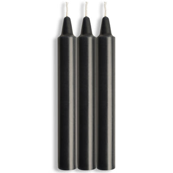 Lacire Black Drip Candles 3 Massage Candles from Sportsheets. Experience the delicious tension of temperature play with these sensual drip candles. Made of body safe paraffin wax, our Violet Pillar Candles allows a safe, approachable way for curious minds to play with wax. Hold the candle at an angle to control the flow of the wax and drizzle warm pleasure onto your lover’s body. Massage in and leave on until it cools. Once dried, easily peels off. Candles should be a minimum of 36 inches from the skin to allow wax to cool before contact.
