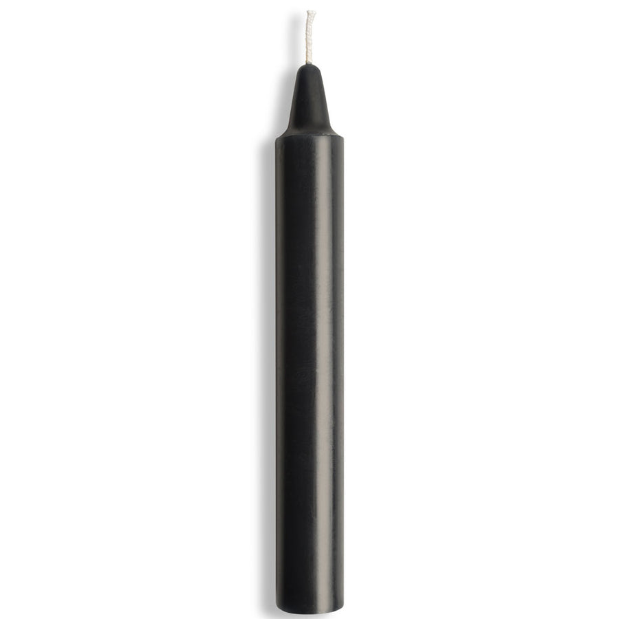 Features: unscented. Handmade. Non-staining. 100% paraffin wax. Wick is 100% cotton. Each candle burns 90 minutes. Product dimensions .71 ounce each. Height 5.25 inches, Width 2.5 inches. D 0.75 inch. Safety call out: avoid dripping wax on eyes, mouth, nose, ears, genitals, and hair. Keep a wide mouthed vessel of water nearby in the event you need to quickly extinguish the flame or safely drop the candle. In The Box: 3 black pillar candles.