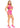 2 PC Dotted net and lace halter crop top with faux lace up front and mini skirt. O/S Magenta