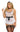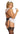 Lace apron with ruffle details, attached elastic garters, adjustable criss-cross back straps and ribbon waist tie. Matching lace g-string, maid cap, neck ribbon, and feather tickler included. *Stockings not included.