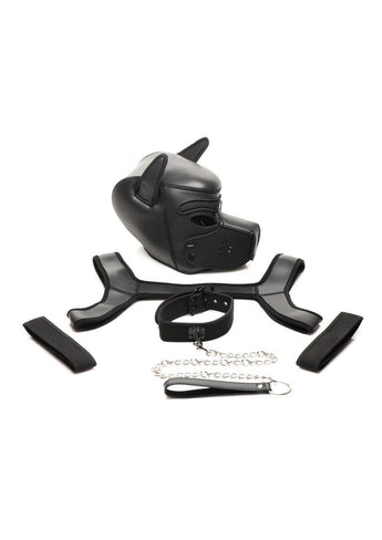 - Complete Puppy Play Kit: Everything you need to play! Includes a puppy hood, collar, leash, chest harness and arm bands.