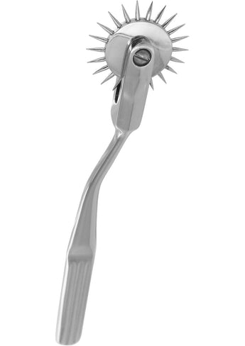 Test the limits of sensitivity play with the Odax Sensation Wheel from the Master Series. Run this premium spiked wheel across the skin and other highly treasured areas for an exciting prickle of pleasure. Made of stainless steel and deviously designed with a row of evenly spaced sharp pins that turn smoothly as it rolls across the flesh, the Odax is ideally designed for intense, exquisite pleasure. Take it to the next level with a little temperature play...the slick material of the Odax can be warmed or cooled for an extra spike of sensation.