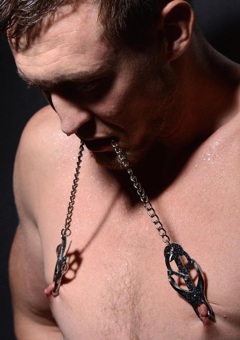 Submit to your deviant desires with this timeless classic. The Sterling Monarch Nipple Vice from Master Series provides a light initial sensation until the chain is pulled. They become increasingly harsh, clamping down harder as more pressure is pulled on the chain. The clover-style mechanism makes the Monarch grip tighter, unyielding on sensitive flesh. Recommended for those with moderate to heavy BDSM experience, or an insatiable appetite for a little pain.