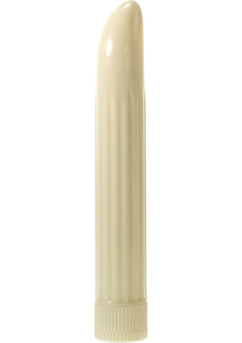 Sensuous Ribbed Vibrator Ivory. This multi-speed vibe is an absolute classic. Perfectly designed with a slim, multi speed shaft this vibe is ideal for those who like their fun pure and simple. An essential vibe for any collection! (Batteries Inc.)