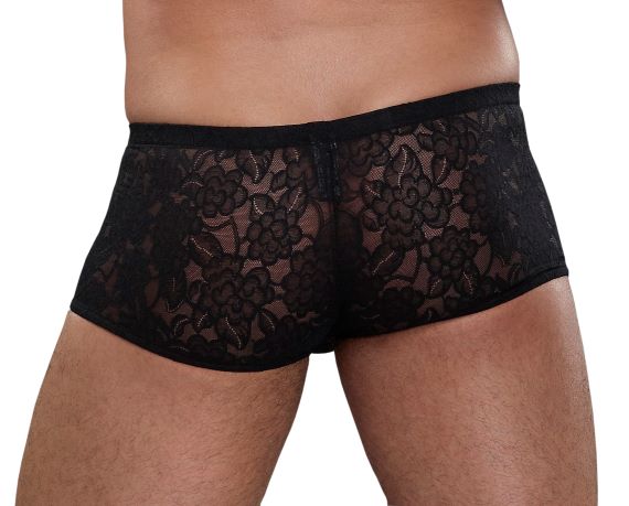 Male Power Mini Shorts Stretch Lace Black Large. Blur the lines of masculinity when you step into this floral lace shorts. The soft, stretchy feel, low rise, and comfort fit pouch ensure pleasure. Whether you are gender fluid, neutral, or identify as masculine or feminine, there is definitely room in your underwear drawer for this stand out piece. Fabric feature breathable, Lace, stretch. Material Nylon. Occasion. Every day. Made in the USA. Sexy style shorts. Collection Stretch Lace. Men size large. Waist 36 inches to 38 inches. Color: Black. Fabric content 85% Nylon, 15% Spandex. Additional product information: Fabric features Breathable, Lace, Stretch. Material Nylon. Occasion, Best Sellers, Every Day, Made in the USA. Men's Lingerie, Sexy Style Shorts.