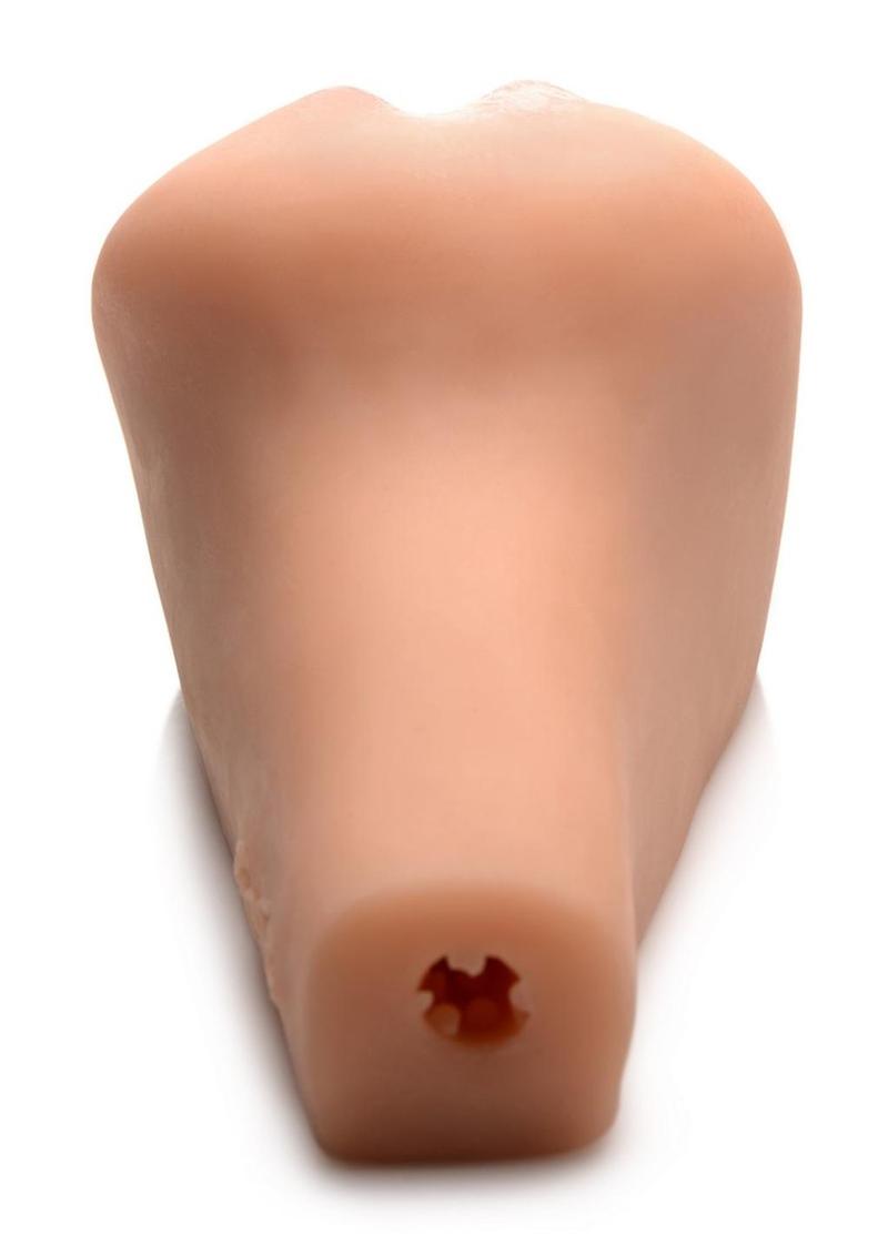 Grab your favorite water-based lubricant and squirt some inside her tunnel, then use the rest on yourself. Slide the tip of your dong in, then use your hand to guide the shaft in. As the ridges and nubs grip your shaft and massage and squeeze you, enjoy the pressure control from your hand as you stroke. Close your eyes, lay back, and enjoy the fantasy!
