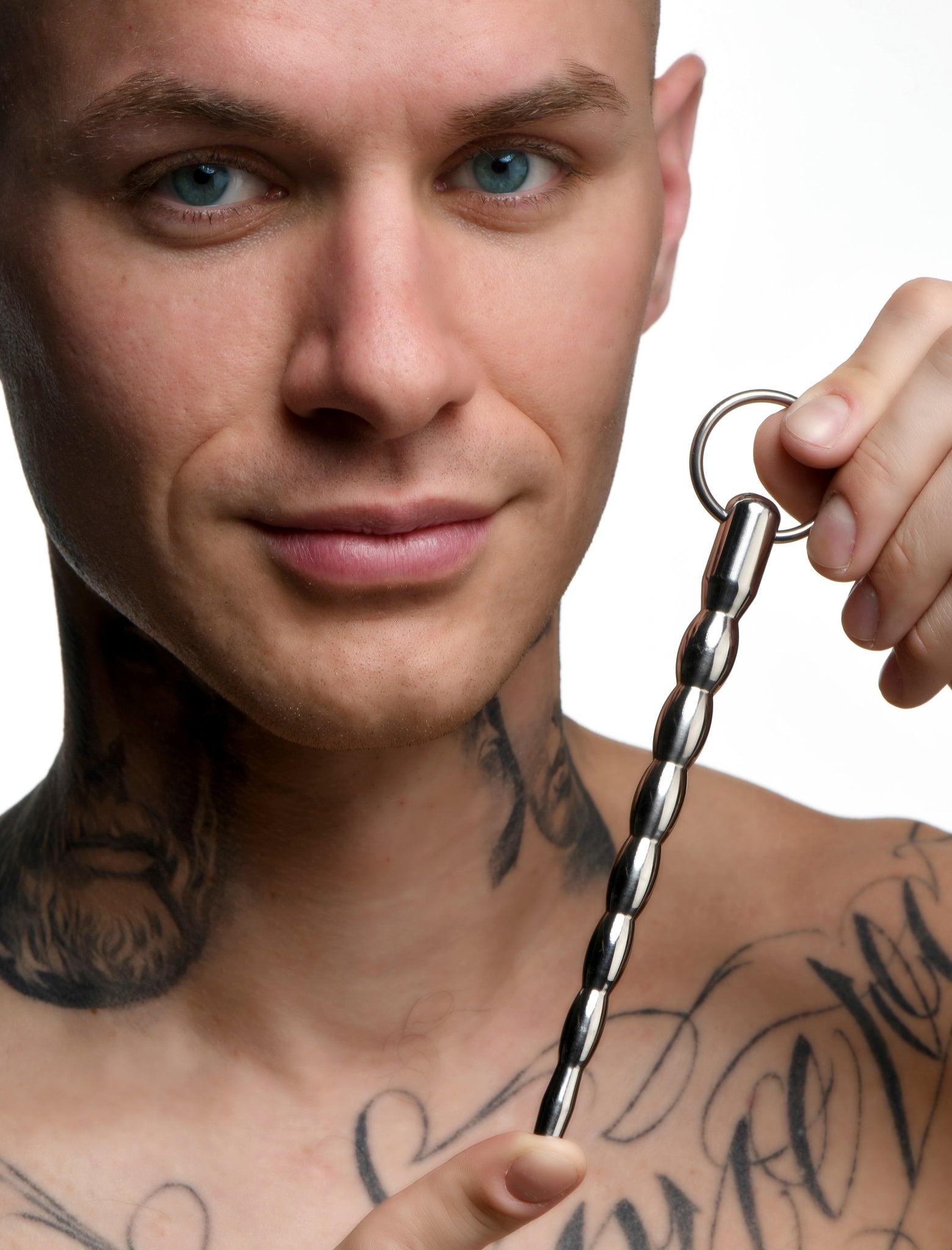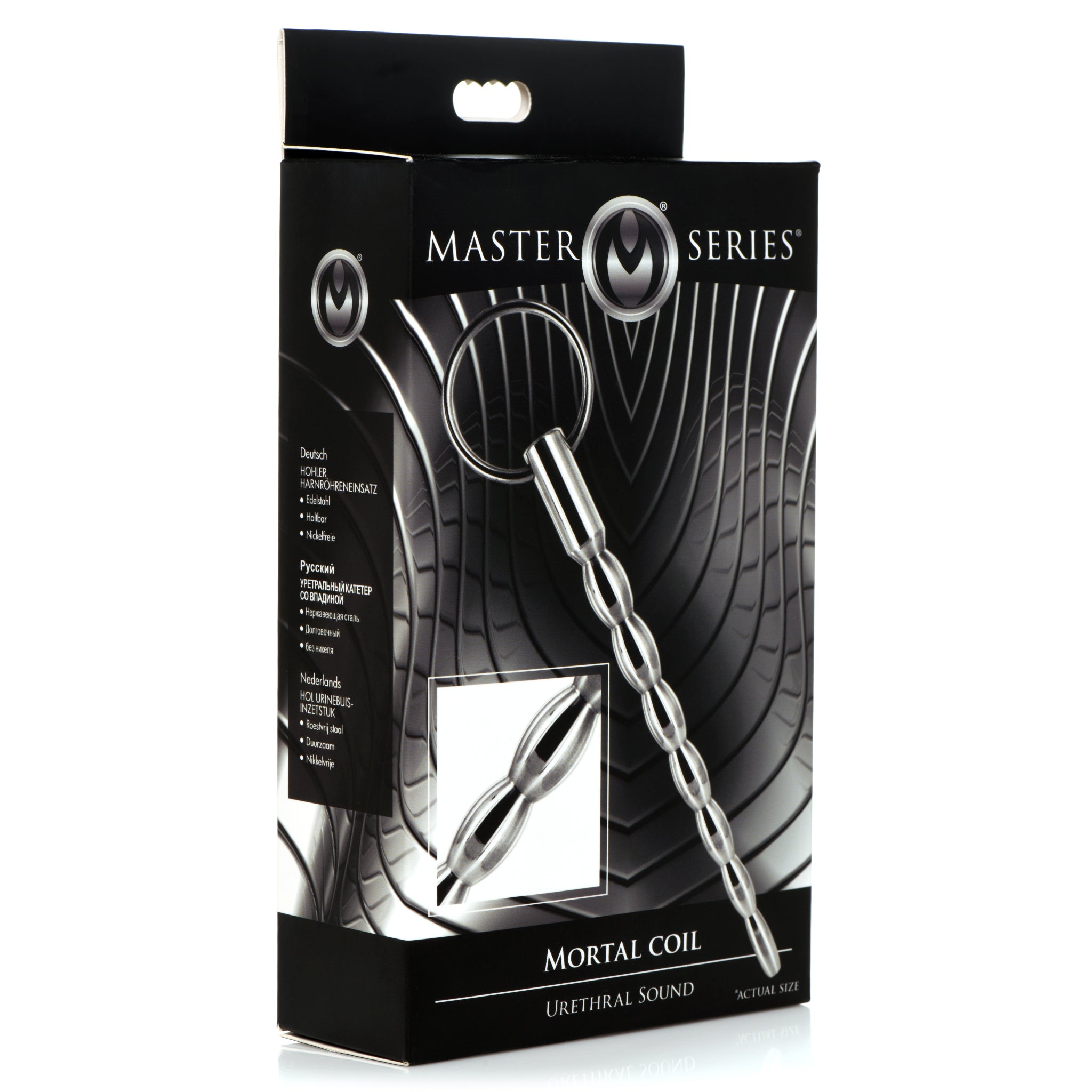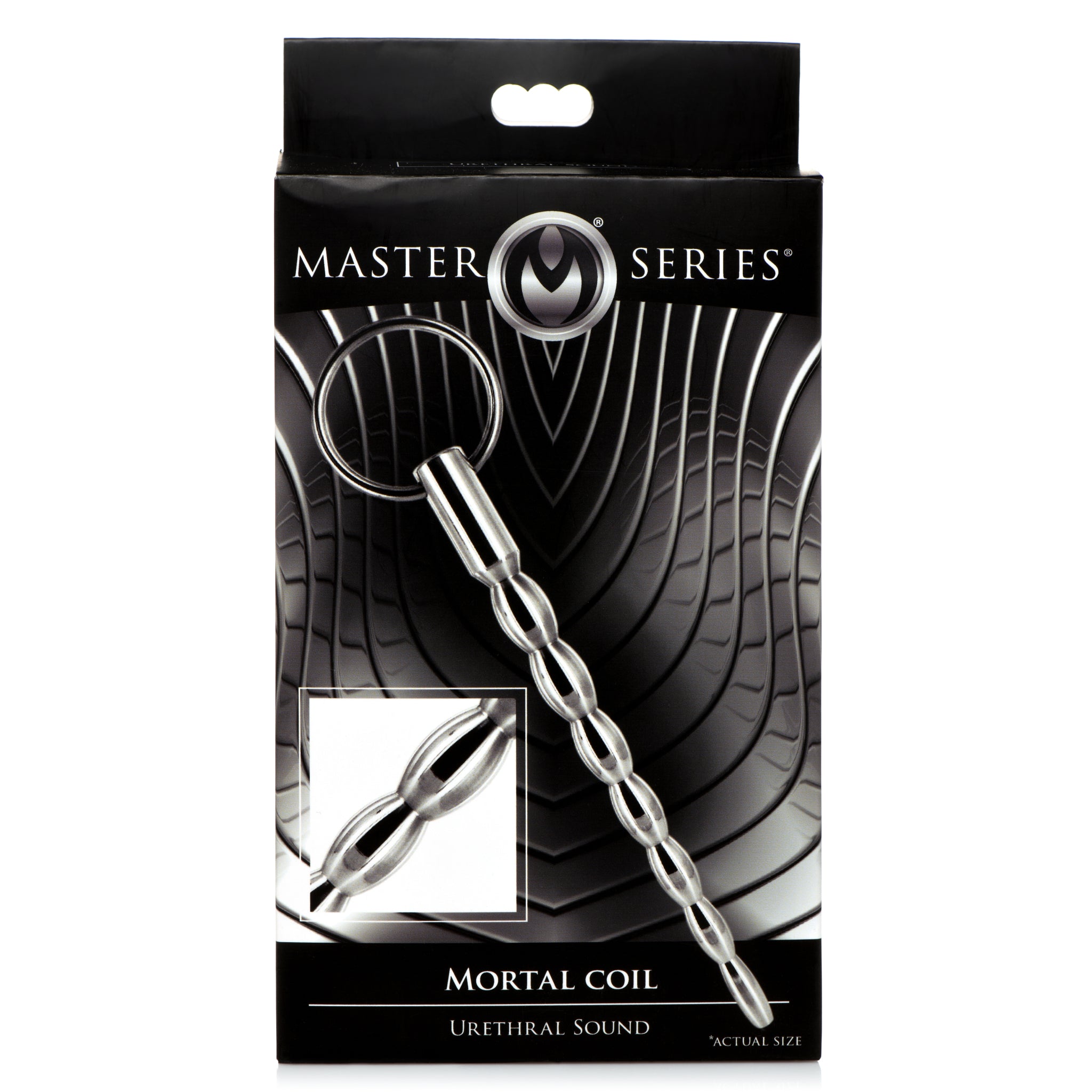 Master Series Mortal Coil Cum Thru Sound device from XR Brands. Slide this Stainless Steel Rod inside for arousal enhancing sensations! The rod has graduated bumps so you can enjoy a wider stretch as you insert it. The hollow tunnel allows for more space for lubricants and other bodily fluids that may pass through or get inside. Keep it from going too deep by pulling the retrieval ring to remove the hard rod from your shaft. Run hot or cold water over the sound prior to insertion to add an extra sensational element with temperature play! Use any type of lubricant you like as long as it is a sterile lube for best results. Make sure the sound is clean before using it. Use a sterile lube and use it liberally. Begin to part the urethral hole and slowly slide the rod tip in. As each larger bump slips in, enjoy the gradual stretch as it enhances sensation and sends waves of pleasure through the core of your shaft. Gently stroke the shaft with your hand and feel the pressure from the inside and outside at the same time! Before you fully release, remove the sound by pulling the retrieval ring and let yourself go! Measurements: overall length 6.4 inches, insertable length 5.1 inches, widest insertable diameter: 0.47 inch, Inner diameter: 0.15 inch. Materials: Stainless Steel. Color: Silver. Note: do not heat or cool to extreme temperatures; urethral tissue is sensitive and could be damaged. The Mortal Coil sound Master Series is made of brushed Stainless Steel and is designed to increase pleasure. Progressive swells allow for added stimulation. Long and smooth, this sound is perfectly suitable for targeted sensations. Take it to the next level with a little temperature play: the Mortal Coil can be warmed with warm water or cooled in the refrigerator. A through hole runs through the Shaft and a ring pull is attached to the end for easy manipulation and retrieval. No warranty is given either implied or expressed. Products are intended as novelty only, and no representation is made or implied as to their suitability or safety for any particular use. Purchasers use the products entirely at their own risk. The manufacturer or re-seller is not liable for any direct, indirect, incidental or consequential damage or loss how so ever arising caused by use or misuse of the products. This includes, but is not limited to, damage to the products and personal injury or damages due to use or misuse. Master your domain. Explore an abyss of taboo fantasies with Master Series! Spanning all levels and niches of BDSM and Fetish, this devious collection includes essentials for chastity, puppy play, Master/slave, medical fetish and much more! Discover cutting edge toys, tools, and devices that will make your inner Dominant or submissive tremble with excitement. Craft an unforgettable play scene with unique accessories from Master Series. Category: Master Series, Cock and Ball Torment, Medical Gear. Mortal Coil Cum Thru Sound from XR Brands. SKU XRAC458. Categories: Bondage, Fetish, Kink, Men's Fetish Wear, Men's Cock, Ball Gear. XR Brands - Master Series. 2023.