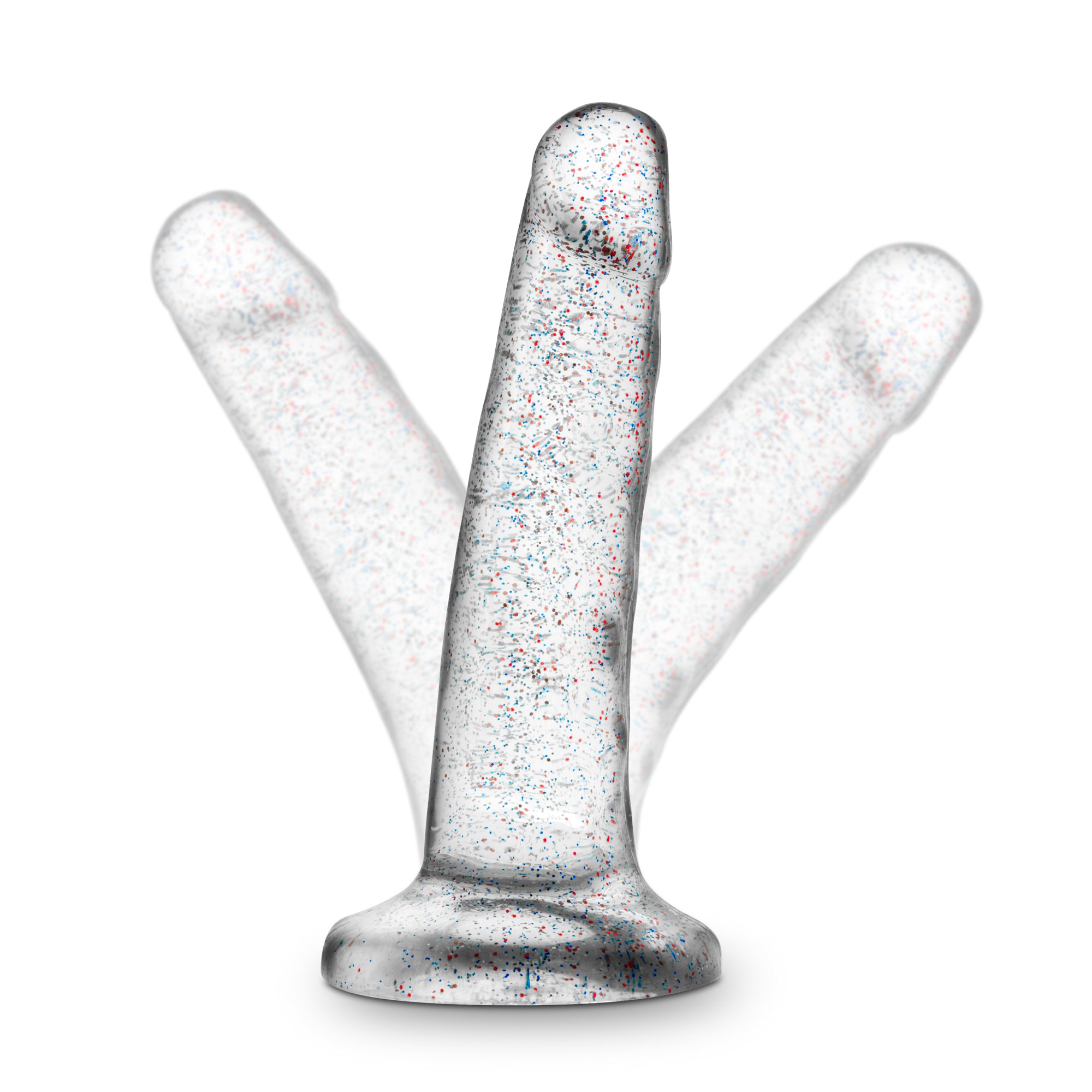 The Naturally Yours 5.5" Glitter Dong is NOT another boring dildo. It's crystal-like shimmering shaft looks adorable and pretty. The Glitter Dong 's 5 inches of soft insertable shaft fills you up comfortably. It's the perfect body safe sex toy for foreplay, as a sex toy for threesome sex or a non vibrating masturbation toy. Whatever your pleasure the Glitter Dong is there for you. The 5.5" Glitter Dong is made from body safe TPE that contains no phthalates, latex, parrafins or anything else that is not safe for your body. It's your body. Be mindful of what you put in it.